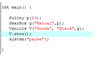 Vehicle V("Honda Toyota", "Black", g);